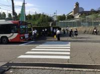 早朝から、生徒会やボランティア委員の生徒、本校職員やPTA役員の皆さん、地域の婦人団体の皆さんのご参加をいただき、校門前のバス停付近と永安町の交差点で街頭指導を行いました。バスや自転車、保護者による送迎などで登校してくる生徒達に対して、挨拶や声かけ、指導を行いました。朝の慌ただしい時間帯で、思った以上に交通量も多く、十分注意しなければならないと再確認することができました。ご協力いただいた皆様にお礼を申し上げます。