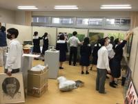 その第一弾は、野々市市立布水中学校で開催できることとなり、7月1日(水)、本校の生徒と職員が作品の搬入、展示を行いました。教室を一つお借りして、数多くの作品を並べます。みんなで協力して、1時間ほどで作業を終えることができました。