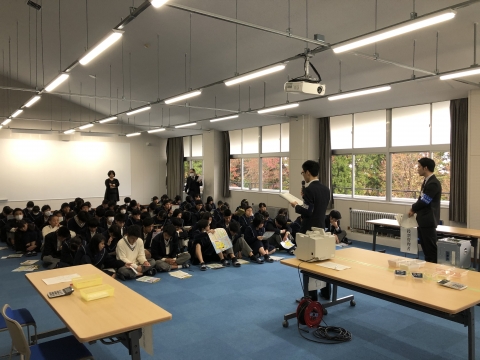 いしかわ教育ウィーク期間中の11月2日(土)に、社会福祉法人佛子園の運営するB's行善寺代表の速水健二施設長を講師としてお迎えし、「これからの福祉や町づくりとは?」という演題で話して頂きました。50分間という短い時間ではありましたが、高齢化社会に関しての明るい希望が持てました。講演では高齢者や障害を抱えた方らが地域住民とゴチャマゼの中で生き生きと生活している様子が紹介され、福祉に関する新しい形のアプローチや過疎化の進む地域の再生に関しての取組を通して多くのことを学ぶことができました。