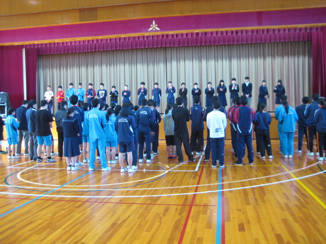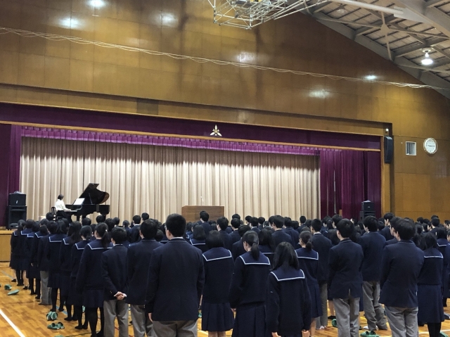 3学期の始業式が行われました。学校長より、センター試験が目前に迫った3年生へは、最後の最後まで粘り強く取り組むことの意義について、1・2年生へは、失敗することを恐れず色々なことにチャレンジすることの大切さについて訓話がありました。続けて、今年はオリンピックイヤーということもあり、卓球女子の平野選手が前回オリンピックで代表メンバーから外れながらも「次こそは」という目標を持ち続けて努力を積み重ねてきたことを引き合いとして、「今年の目標をぜひ立てるように」と強く呼びかけがありました。