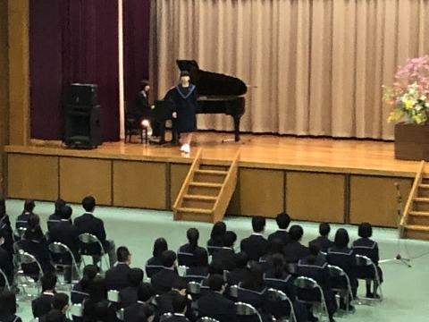 入学式後の新入生代表(山崎愛来)による記念演奏(ソプラノ独唱)
