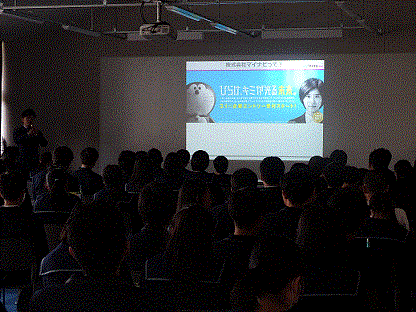 (株)マイナビから山本達郎氏をお迎えし、新しく整備されたアクティブラーニング教室で、2年生の1年間に何をしたらよいのかについて講演していただきました。