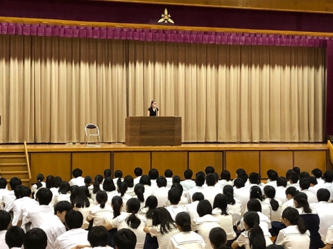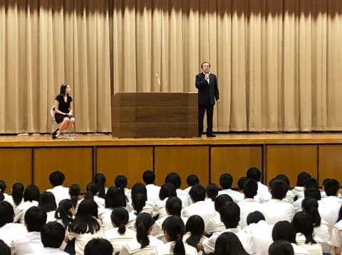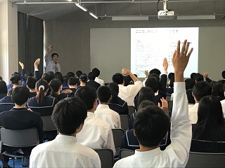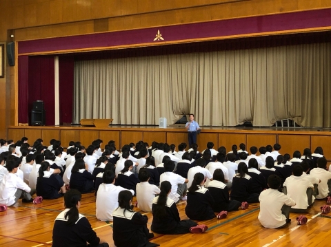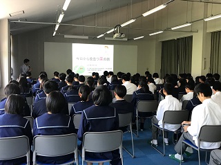 社会で必要とされる力やAI化が進み仕事がなくなっていくことなどから、勉強することの大切さや進路選択のポイントなどについて学びました。生徒たちは集中して聞いており、得るものが大きかったようです。