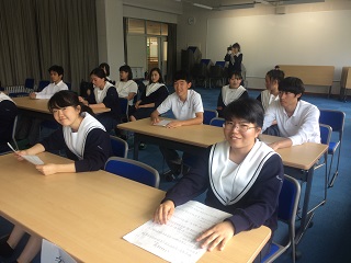 5月20日、本校2年グローバルコースの生徒18名が北陸大学へ出かけました。今年度のTGS活動の全面開始です。TGS(辰巳グローバルセミナー)は、本校2年グローバルコースの生徒が英語や中国語を実際に使う外国人とのコミュニケーション活動のことで、4年前から始まりました。今年の内容は、北陸大学留学経験者との会談、留学生へのインタビュー活動、外国語での発表などです。生徒が年度末に中国語や英語で発表出来るようにこれからコツコツと練習に励みます。