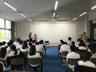 その後、本校教員が現代社会において中国語学ぶことの大切さなどを伝えました。