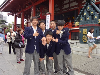 交流会後、生徒が留学生に本校の案内をしました。初めて日本の高校を訪問した留学生たちはとても興味深そうでした。本校の充実した音楽設備と美術作品に感心している留学生もいました。