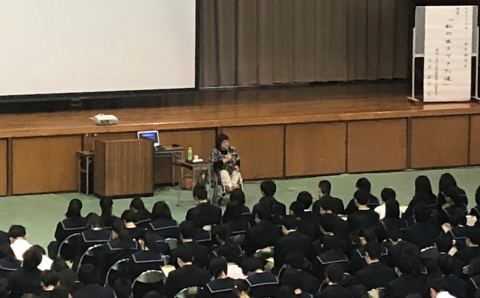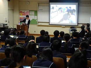 いしかわ教育ウィーク期間中の11月3日(土祝)に、元車いす陸上競技等でご活躍された久木直子さん(小松市役所勤務)を講師としてお迎えし、「私の生きてきた道」という題で半生をつぶさに話して頂きました。50分間という短い時間ではありましたが、2歳の時、ポリオウィルスに感染されてから社会人になるまでの様々な人との出会いや、自身の子が障害を持つことになった母親の決意、何事にも挑戦してみようとするポジティブな姿勢などのお話から実に多くのことを感じ取り、自分もがんばってみようという気持ちになりました。