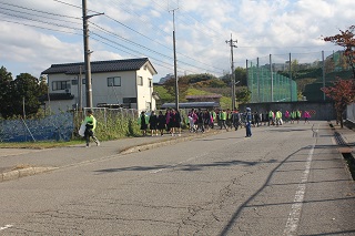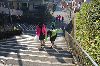 バスケットボール部員が笑顔で声かけ