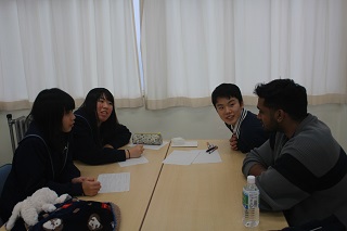 英語会場では、スリランカ、アメリカ、ロシア、中国等の国々から来ました留学生と楽しい雰囲気の中で様々な話題で盛り上がっていました。