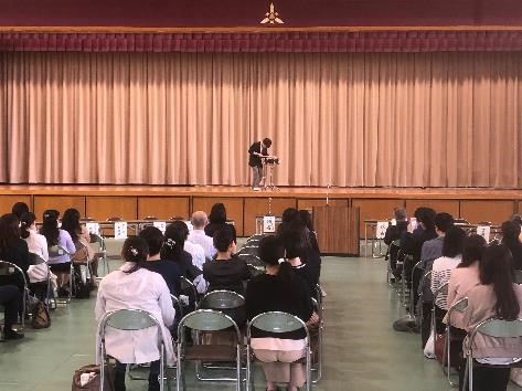 総会開始前の公開授業の時間から多数の保護者の方が来校され、学校での活動の様子を興味深く参観されていました。その後、体育館では、全日本高校生管打楽器ソロコンテスト3位の生徒による記念演奏会を皮切りに、PTA総会が行われました。