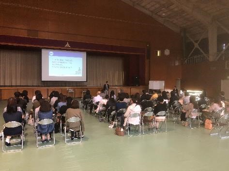 PTA総会後に行われた進路講演会では、変化の激しい社会情勢の中における進学・就職環境についての今後の動向や、高卒生、大卒生それぞれに求められている資質についてわかりやすく説明していただき、説明スライドをスマホで撮影する方も多くみられました。