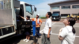 2018年7月30日 08時51分7月27日、生徒会メンバー3名が石川県トラック協会の主催する「高校生による大型トラック体験乗車と感想発表会」に参加しました。大型車の運転席からは実際どのように見えるのかを知り、自転車に乗るときや、将来乗用車を運転するときの注意点を学習しました。また、大型トラックの運転手さんと実際に交流し、学びの多い一日でした。