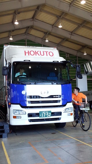 7月27日、生徒会メンバー3名が石川県トラック協会の主催する「高校生による大型トラック体験乗車と感想発表会」に参加しました。大型車の運転席からは実際どのように見えるのかを知り、自転車に乗るときや、将来乗用車を運転するときの注意点を学習しました。また、大型トラックの運転手さんと実際に交流し、学びの多い一日でした。