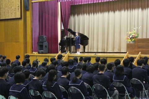 式後の新入生代表(竹田 魅音)による記念演奏(ソプラノ独唱)