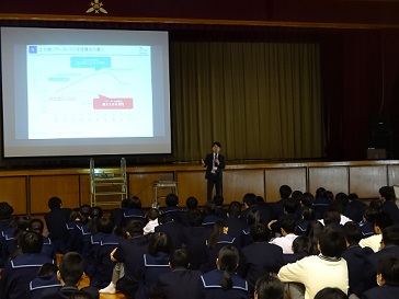 講演会では下村啓介氏が「立派な社会人になるための高校生活