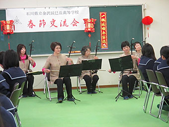 続く中国の伝統楽器の二胡鑑賞では、生徒たちは「初めてこんなに近い距離で二胡の演奏を聴いた」と大感激していました。