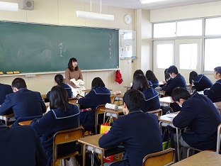 2年生グローバルコースの生徒36名が、中国の春節とその由来、伝統的な行事などについて学び、県国際交流員の話を聞きました。