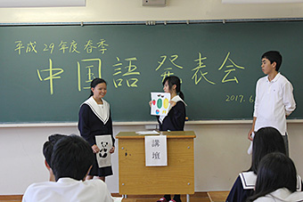 6月21日(水)放課後、本校講義室Aで今年度初めての中国語発表会を行い、発表者の14名が日頃の練習の成果をみんなの前で堂々と発表しました。