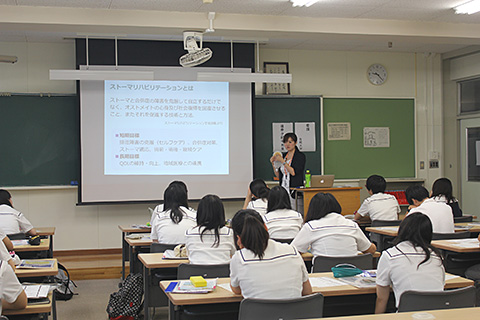 2016年10月11日 08時26分2年キャリアコースには「生活と福祉」という科目があります。この科目では高齢者の特徴や介護などに関することを学んでいます。3年前から近隣の高齢者福祉施設、陽風園で施設交流授業を実施しています。実際に施設職員の方から介護現場の話を聞いたり、利用者の方と関わったりすることで、高齢社会や介護について身近に感じられるようになります。