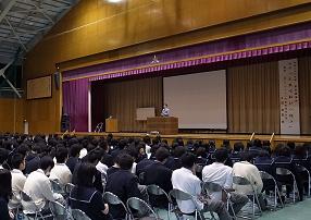 講師は、(株)ルバンシュ代表取締役社長千田和弘さんです。演題は「人生七転び八起き」です。千田さんの起業当時の状況から現在に至るまでの会社経営上で遭遇した困難、果敢に挑戦する姿勢や、就職活動を行う際に心得るべきこと、今企業において必要とされているのはどのような人材か等々、生徒は講演を聴いて多くのことを学ぶことが出来ました。