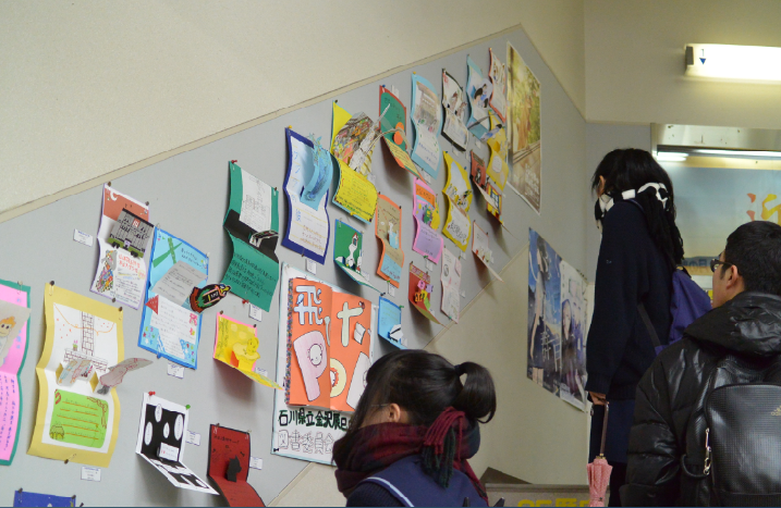 図書委員と有志が作製した「とび出すPOP」(ポップアップカード型のPOP)を石川県立図書館と書店のうつのみや柿木畠本店で展示していただきました。