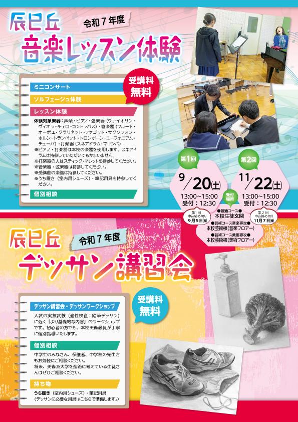 9月20日(土)11月22日(土)に【普通コース授業体験/音楽レッスン体験/デッサン講習会】が行われます。興味ある中学生は是非ご参加ください。 チラシ・申込用紙はこちら→(普通コース体験0920.pdf/芸術コース体験0920.pdf)