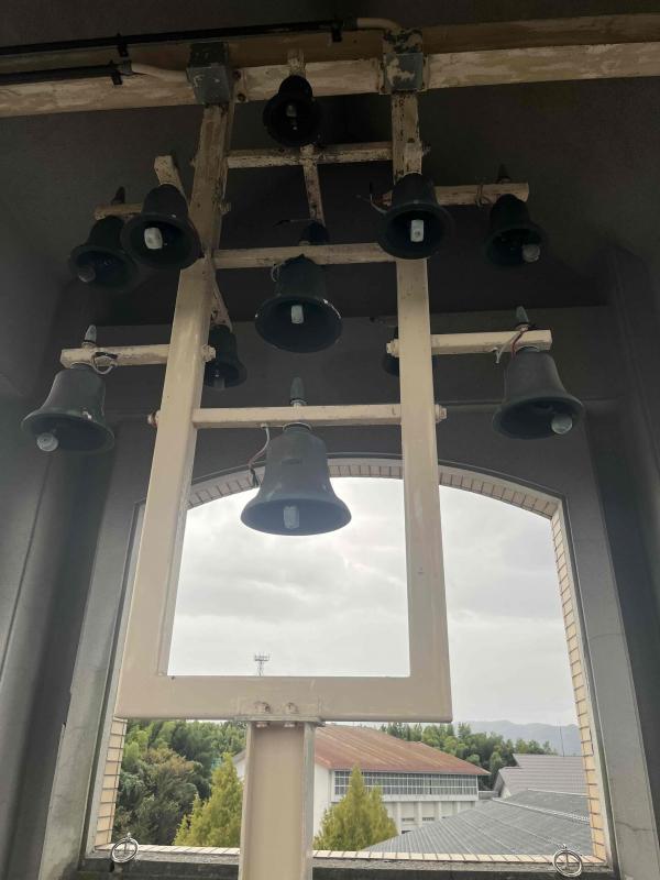 辰巳丘高校の校舎の塔にはオランダ製の大小12個の鐘が取り付けられており、コンピュータ制御でメロディを奏でます。毎日4回(8時、12時、15時、17時)、季節の曲を響かせて生徒と地域の方々に愛されています。カリヨンは辰巳丘のシンボルの1つです。