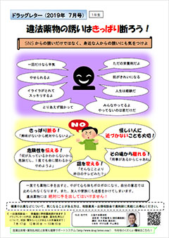 ドラッグレター 2019年7月号 2019年7月1日 10時47分 保健環境 2019年7月号(高1)違法薬物の誘いはきっぱり断ろう!.pdf2019年7月号(高2)知っておきたい打撲や捻挫の処置法.pdf2019年7月号(高3)目薬の正しい使い方.pdf相談薬局一覧.pdf