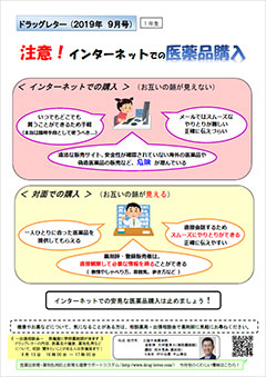 ドラッグレター 2019年9月号 2019年7月3日 10時51分 保健環境 2019年9月号(高1)注意!インターネットでの医薬品購入.pdf2019年9月号(高2)生理痛を乗り切る6つのポイント.pdf2019年9月号(高3)乾燥肌の人は日頃からスキンケアを.pdf相談薬局一覧.pdf