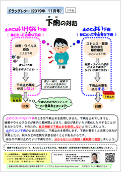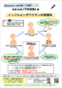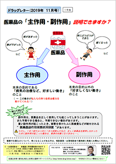 ドラッグレター 2019年11月号 2019年11月1日 09時40分 保健環境 2019年11月号(高1)医薬品の「主作用・副作用」説明できますか?.pdf2019年11月号(高2)免疫のお話 予防接種編.pdf2019年11月号(高3)下痢の対処.pdf相談薬局一覧.pdf