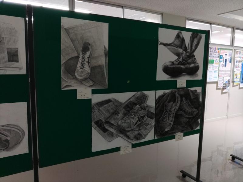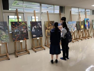 2025年6月4日 10時16分石川県高校総文美術展に出品した3年生の作品を校舎2階に展示しました。