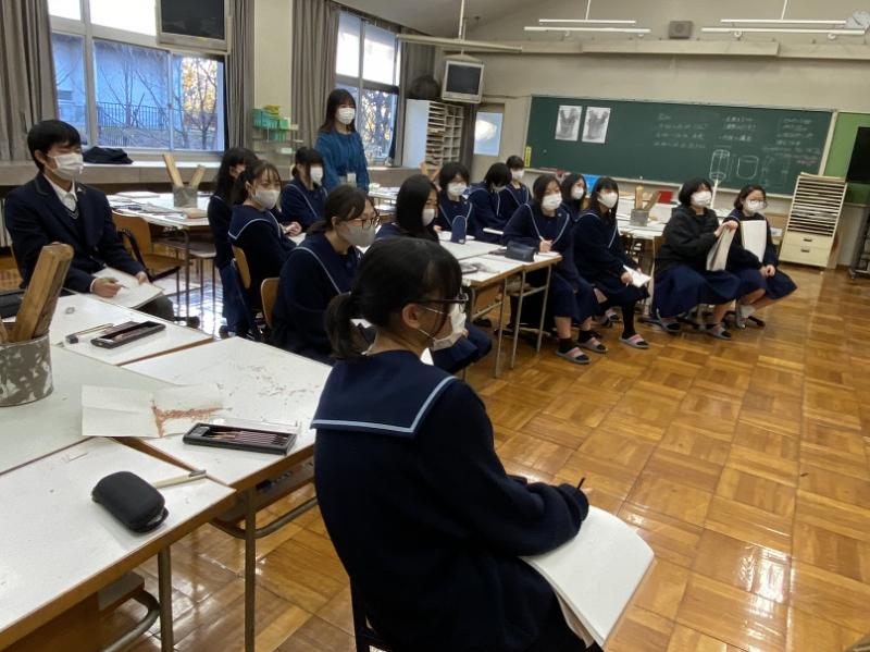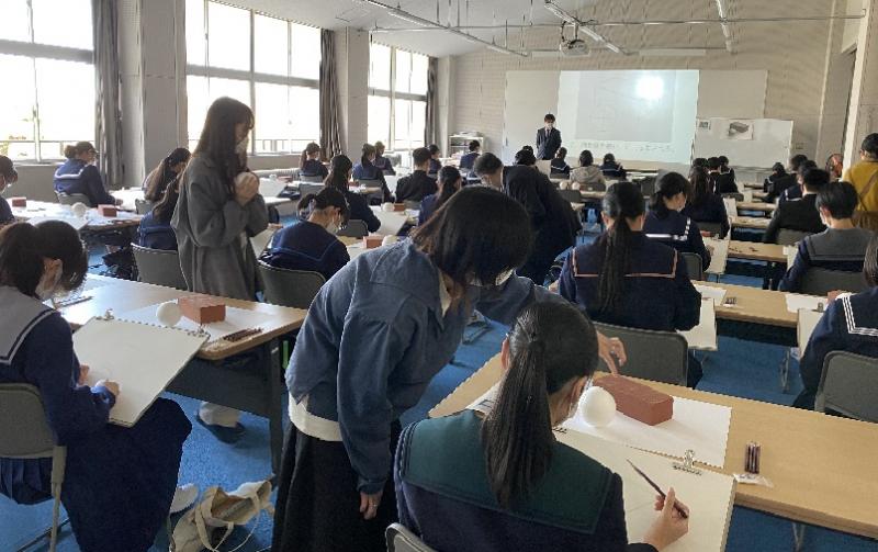 当日は、本校美術専攻1年生対象のデッサン指導も行っており、講習会終了後はその様子も見学しました。