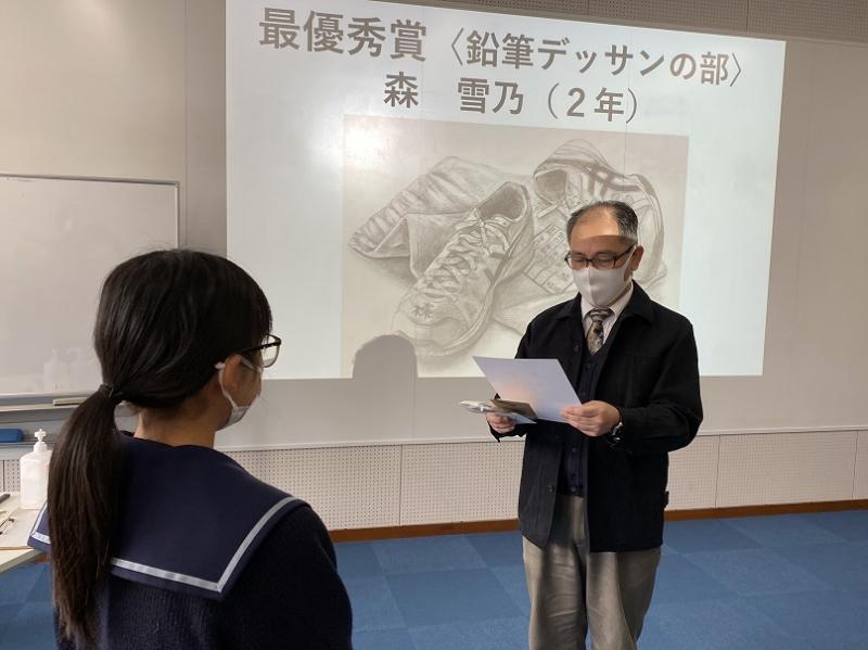 〈鉛筆デッサンの部〉最優秀賞の表彰式