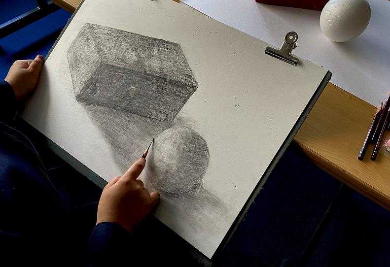 ↑ 1年生は基礎の鉛筆デッサンからしっかり取り組みます。