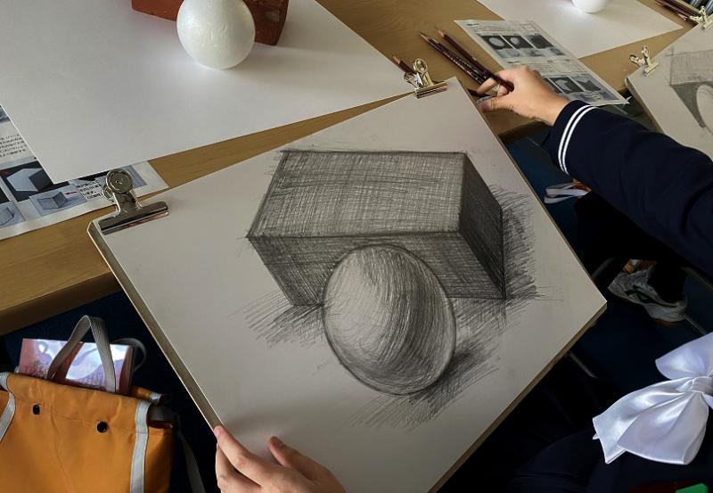 美術専攻では、1年~3年全員を対象として、主に土曜日に美術補習を行っています。このような活動により、基礎となるデッサン力や専門的な実技力はもちろん、粘り強く制作に取り組む姿勢や集中力を養っていきます。