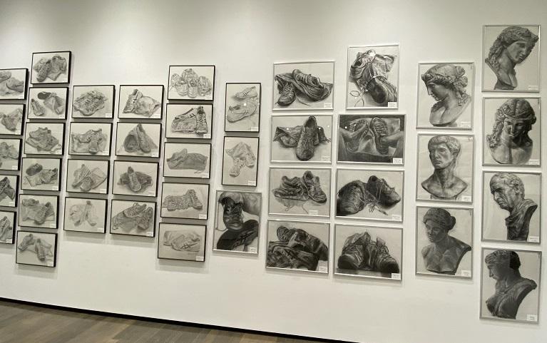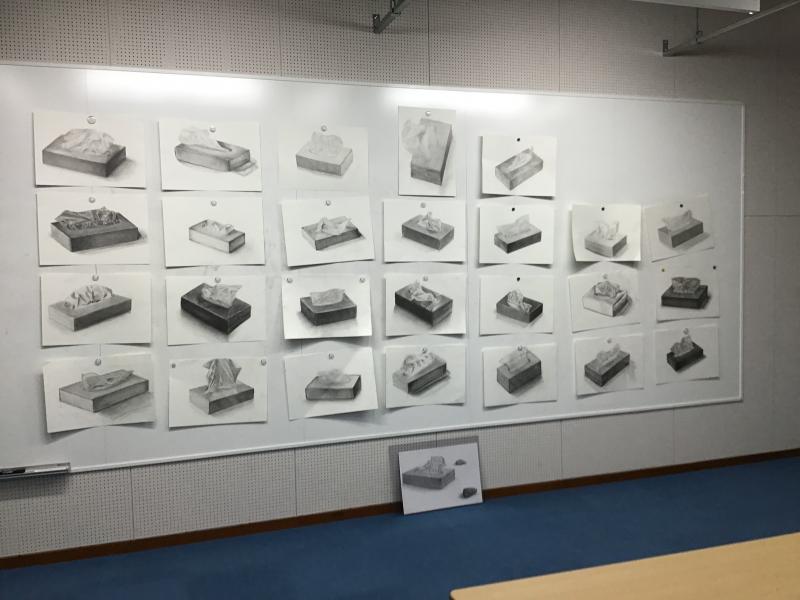1年生デッサンコンクール、石膏デッサンの展示