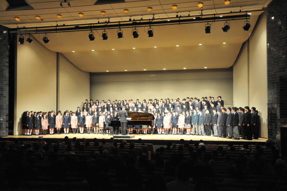 単独の演奏のあとの、石川県合同ステージ、福島石合同ステージに出演しました。最後は本校の顧問による指揮で「故郷」を歌い演奏会を締めくくりました。