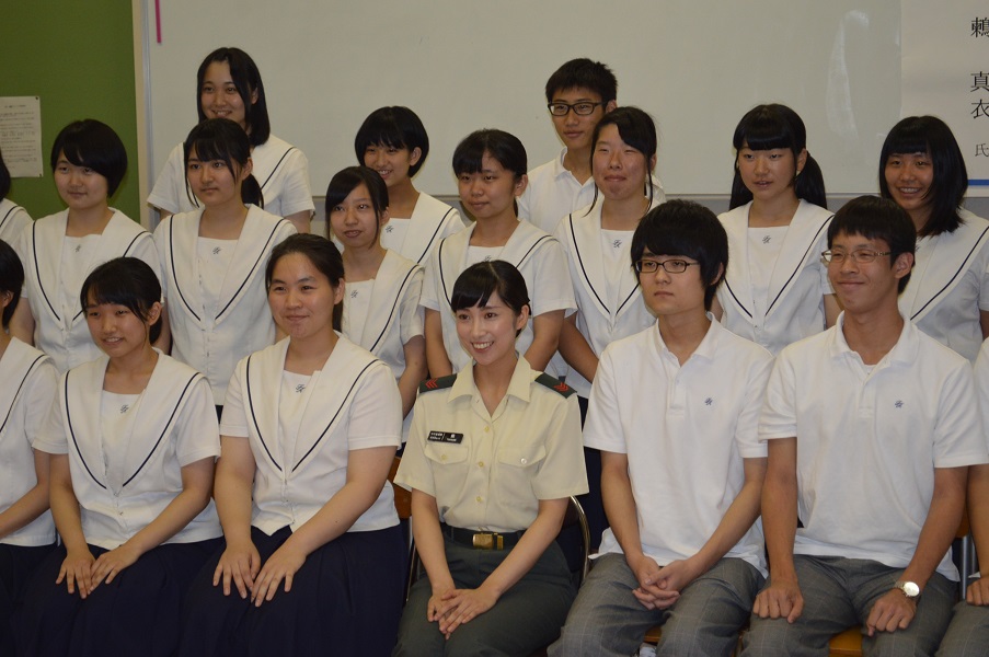 鶫さんは、本校卒業されたあと国立音楽大をご卒業後、洗足学園音楽大大学院を声楽を専攻して修了され、現在自衛隊中部方面音楽隊の「歌姫」としてご活躍されています。