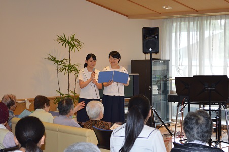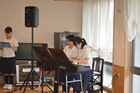 7月8日(金) 午後、特別養護老人ホーム戸室和楽 ホームを音楽専攻の生徒で訪問いたしました。今回も生徒が中心となり企画、選曲、練習をしての訪問です。