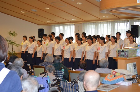 プログラムの最後に、「うみ」を入所してる皆さんと、生徒全員で合唱し、入所されている皆さんとの楽しい時間を過ごすことが できました。