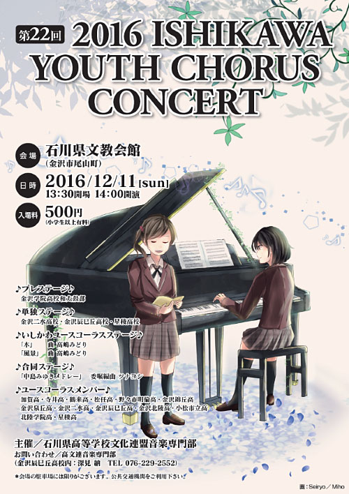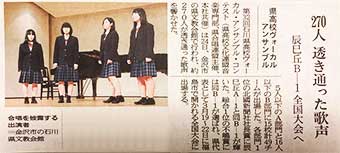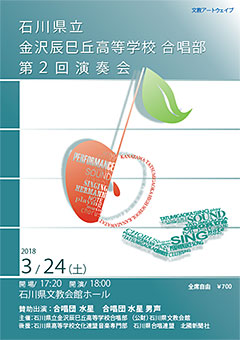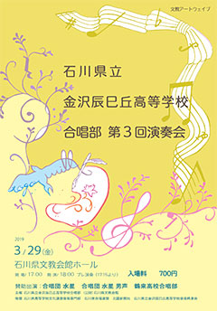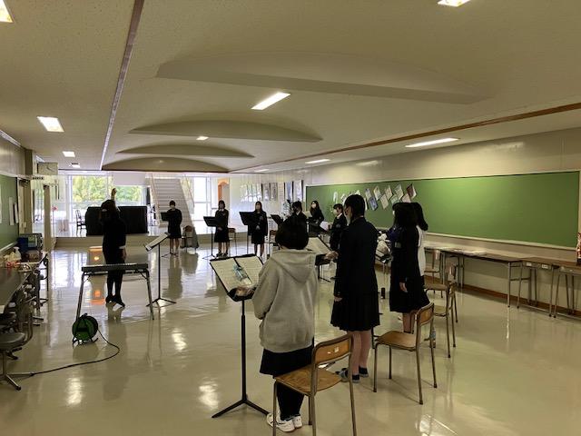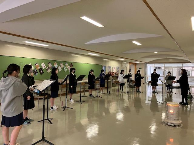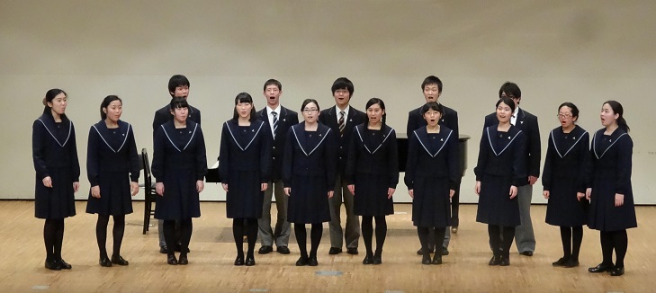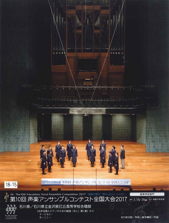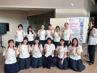 本校合唱部はNHKの課題曲「次元」と「時をかける少女」の2曲を歌い、合同合唱では石川県の合唱部全体で合同音楽会の80回記念で委嘱した「風景」「木」の2曲を歌いました。