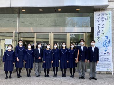 3月19日(金)に行われた第14回声楽アンサンブルコンテスト全国大会高校生の部に県代表として参加しました。どの生徒も限られた時間の中で一生懸命練習し、全員の気持ちをひとつにして取り組みました。本番では聴いている人の琴線に触れる歌声で銅賞をいただくことができました。ご指導いただきました先生方、応援してくださりました皆様にお礼申し上げます。