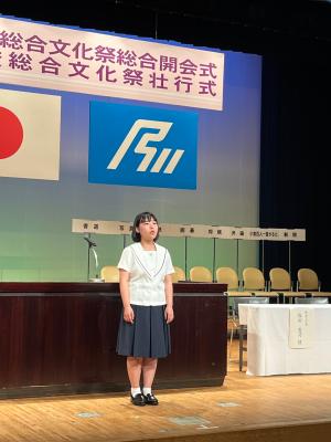 6月1日、石川県文教会館において「第43回石川県高等学校総合文化祭総合開会式・第47回全国高等学校総合文化祭壮行式」が開催され、本校合唱部3年生の北中さんが「国歌独唱」を披露しました。