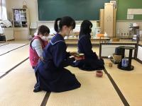 3年間お世話になった先輩3人に、2年生が心を込めて準備をし、お茶をたてました。