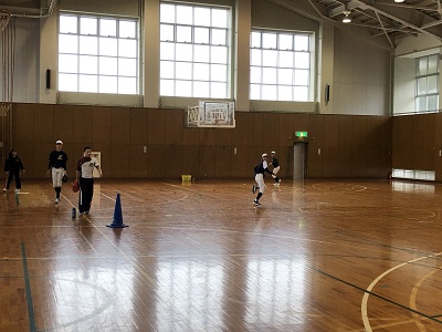 ↓後方のフライの捕球練習