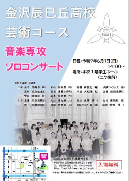 6/1(日) 14:00~ 本校1階学生ホール(ニケ像前)にて、音楽専攻3年生・2年生によるソロコンサートを行います。入場は無料です。ぜひお越しください。(R7ソロコンチラシ.pdf)