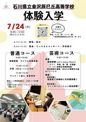 ・金沢辰巳丘高校の基本的な情報は学校紹介、芸術コースの詳細については芸術コース、日々の行事や活動の様子はスクールライフをご覧ください。