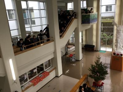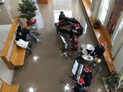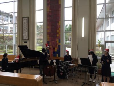 管弦楽・吹奏楽部は12月19日(火)学生ホール・ニケ像前で「クリスマスコンサート」を開きました。昼休み中の束の間ではありましたが、会場内のみんなの笑顔が溢れるあたたかな時間となりました。