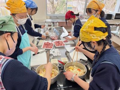 それぞれが材料を持ち寄り、みんなで仲良く調理しました。