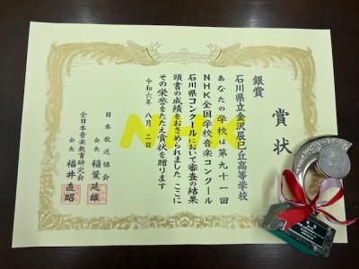NHK全国学校音楽コンクール石川県コンクールにて「銀賞」受賞。